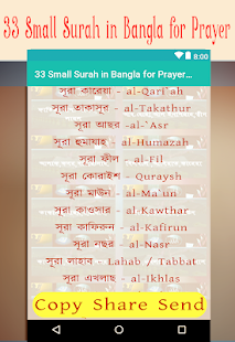 Welcome to my new app 33 small surah in bangla.In this application 33 small surah with Arabic, Bangla pronunciation and Bangla-English meaning have been added. This app contains all the rules of Salat and the necessary surahs are given.